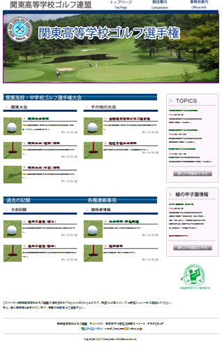 「関東高等学校ゴルフ連盟」は、関東の中学校、高等学校のゴルフ部やゴルフを楽しむ学生のために毎年、選手権大会を開催しています。その公式サイトでは、「大会要項」から、「大会結果」まで、その情報をご覧いただくことができます。本サイトでも今後、広く提携して、こうした情報はもちろん、各高等学校や中学校のゴルフ部やゴルフ同好会の情報もお願いして、掲載させていただくようにすることを計画中(交渉中)です。